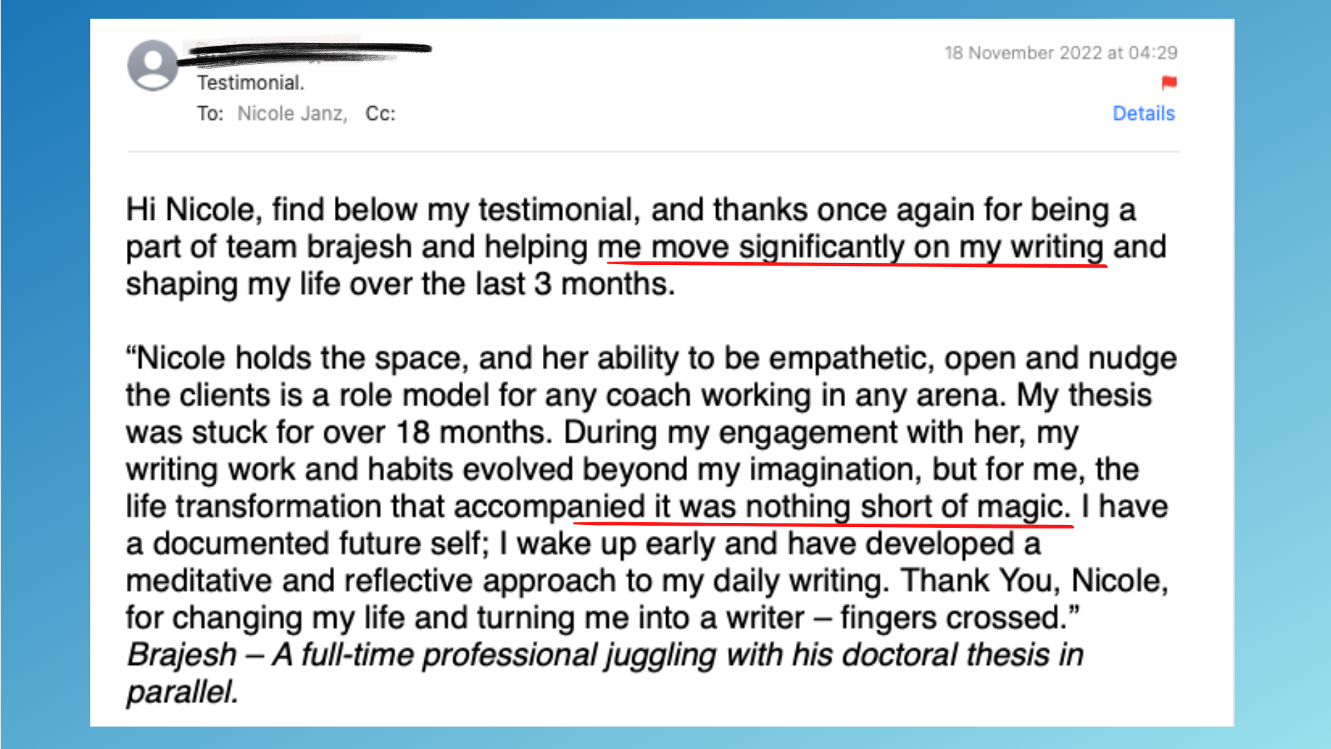 Nicole helped me realize I had something worth saying. Anxious about writing? Work with Nicole!